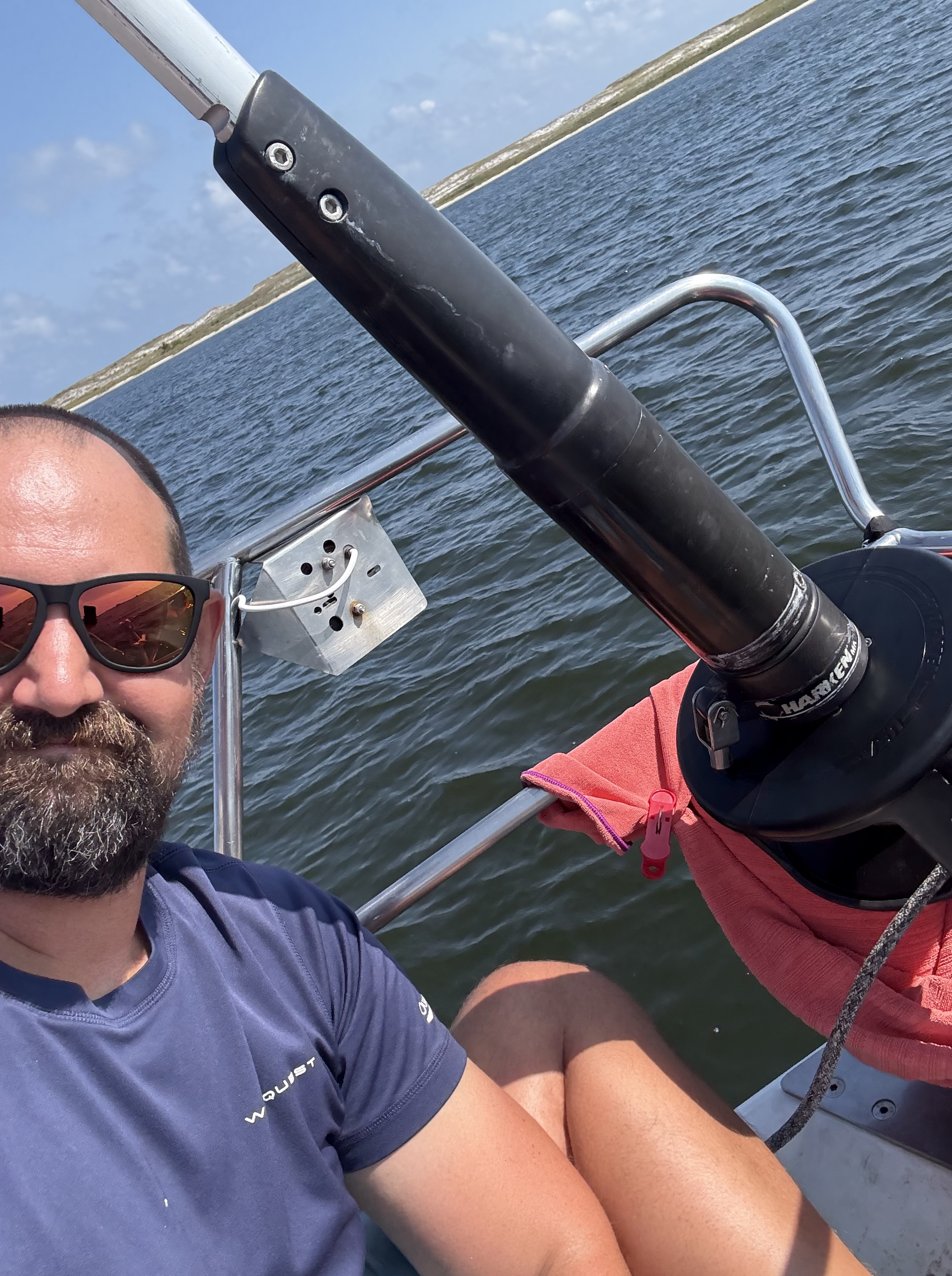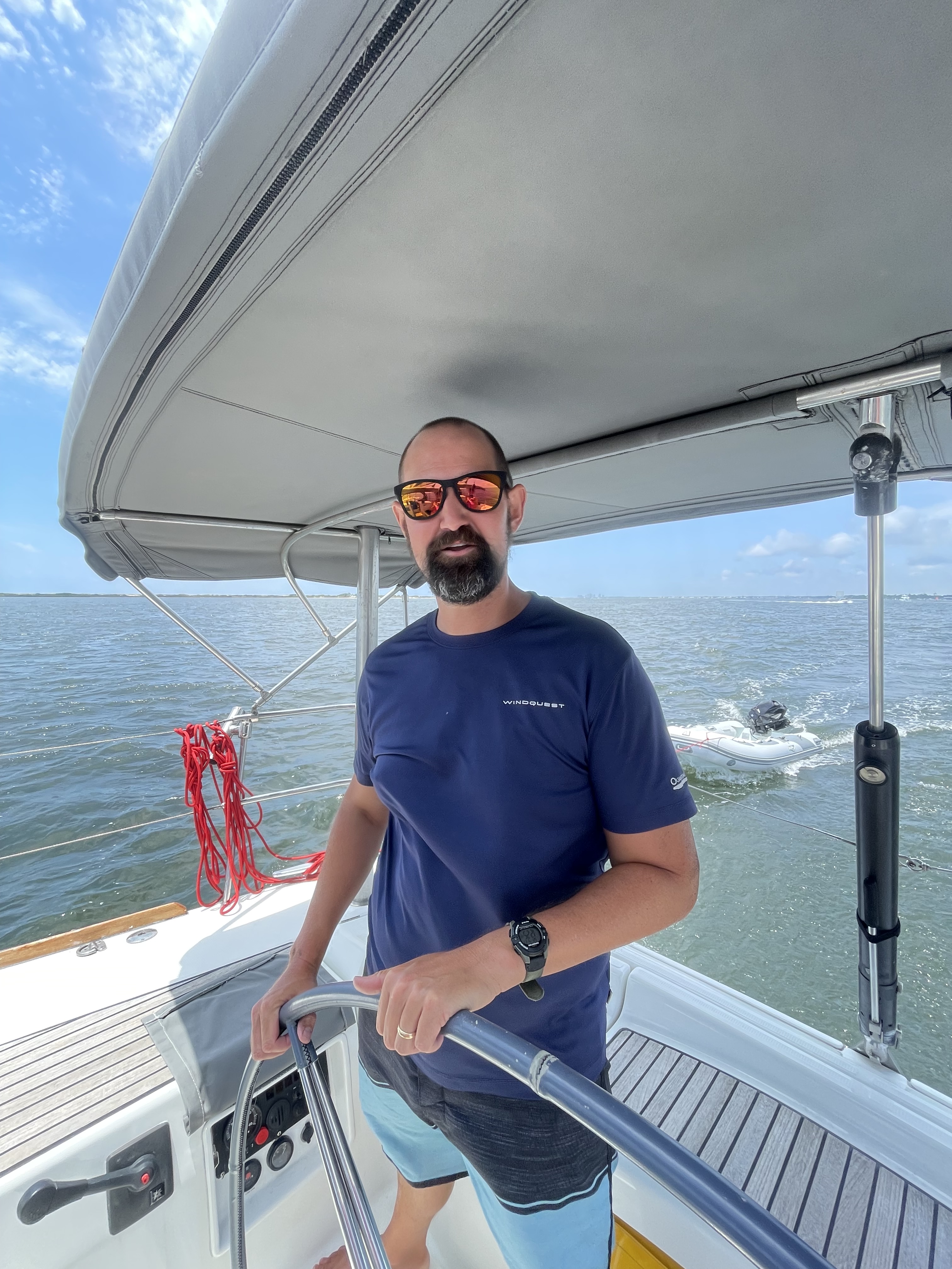 We took an exciting trip east back toward Pensacola on Friday, May 16, in which the engine began making strange noises. Barrett diagnosed the issue as a loose (read: very worn and tired) alternator belt. So, as any normal cruising family would do, we turned the engine off and drifted for a little while as Barrett tightened the belt a bit… a couple of times.
