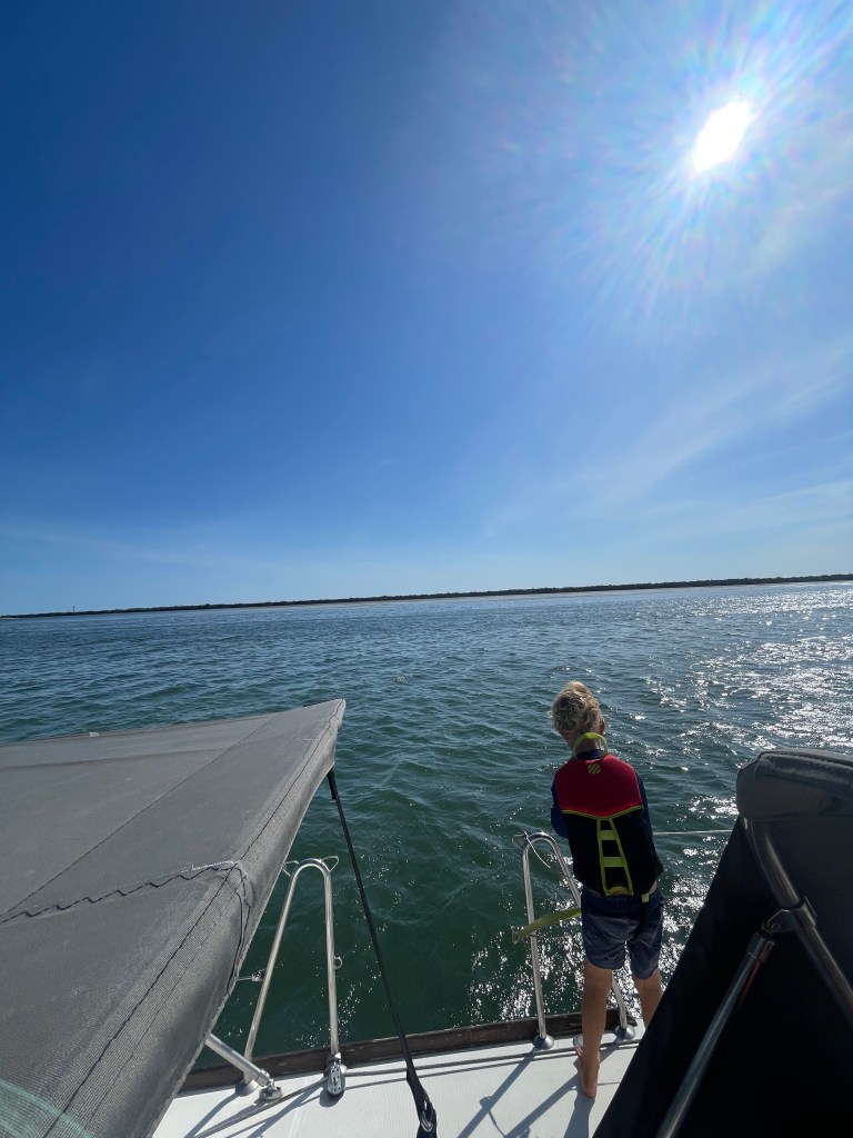 I took the first 5ish hours from 8 p.m. – 1 a.m. while Barrett wrangled the kids for their first bedtime underway. They knew something big was going on, and I think they reflected our excited but nervous energy. I gathered my goodies for going on watch (hot tea, sour patch kids, resistance bands, and a romance novel… IYKYK), and settled in. I knew if I paused long enough to really think about it, I would feel anxious, scared, or intimidated. Because it was kind of my idea to just go ahead from Port St. Joe, and I knew it had to happen, I went with my gut and leaned into the unknown. And let me tell you, I have always loved the unknown.