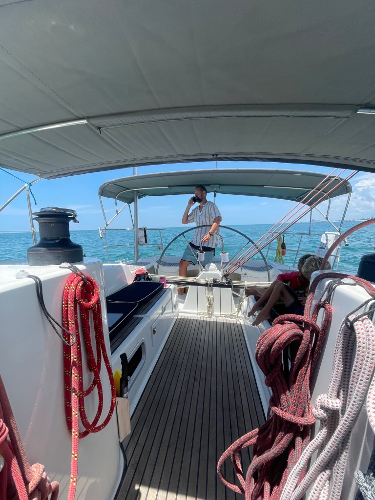 The sun slowly set. The temperature cooled. There was no moonlight, but there was starlight. Otto was on Autopilot, so I was the eyes on the water, paying attention to what’s ahead and on the side of us – monitoring the charts and, most importantly, staying awake. In between looking out from the cockpit, I painted my nails, read my book, spotted bioluminescence, and observed a satellite launch and a lightning storm far away. We’d been discussing for days leading up to this what it might mean for our little crew and how to approach it, and also what to do if, at any point, something didn’t seem quite right. So when the steaming light started blinking in the middle of my shift, I knew I had to say something. It needs some more attention to see what is going on, but it was otherwise an uneventful shift.