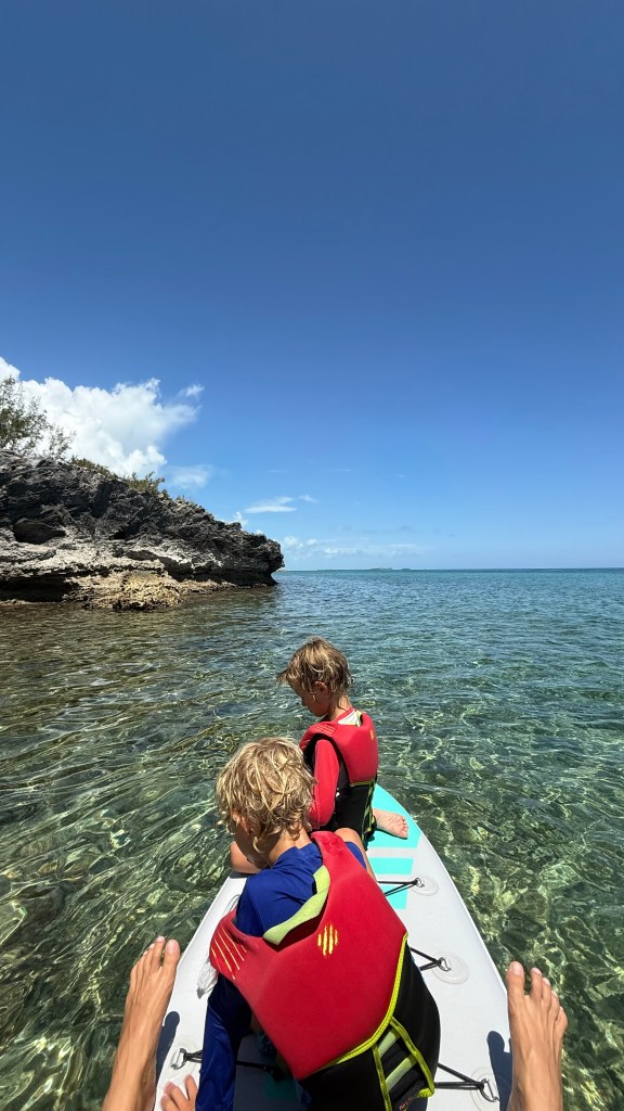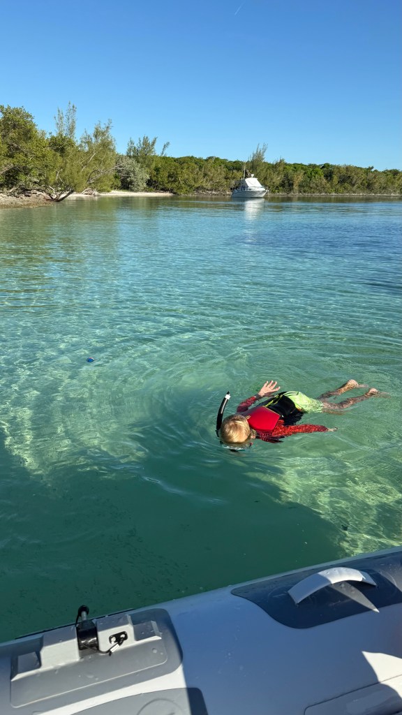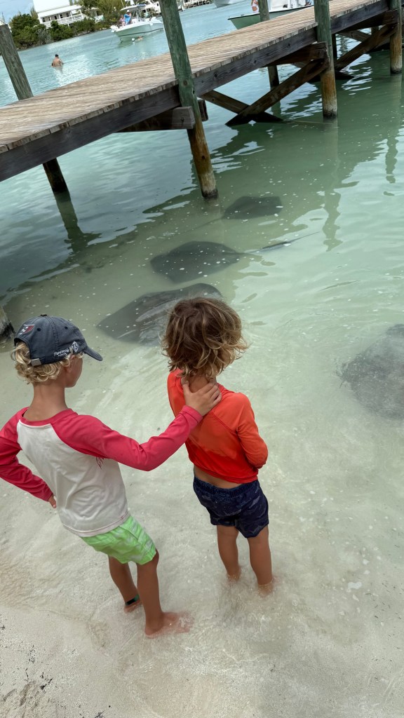 We’d met a family from Florida at the dock in Coco Bay, where stingrays and turtles eat out of tourists’ hands – a mix of anchorage and beach hang that defines Bahamian cruising. It was the kind of meeting that starts as a wave, an introduction, a “Cheers!” and then turns into something real before you quite notice it happening. They were generous in the way that many boat families tend to be. They were there on their center console power boat, I’s on the Prize, for vacation, not as full-time cruisers. They loaned us a spear pole before we’d really earned the right to ask for one, showed up with good energy, and had kids who matched ours in age and temperament in the ways that matter most when you’re all stuck on boats together. Different in plenty of ways, but similarly the same in the ones that count.