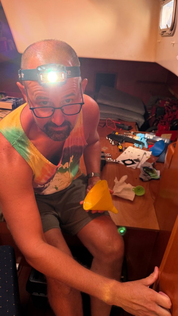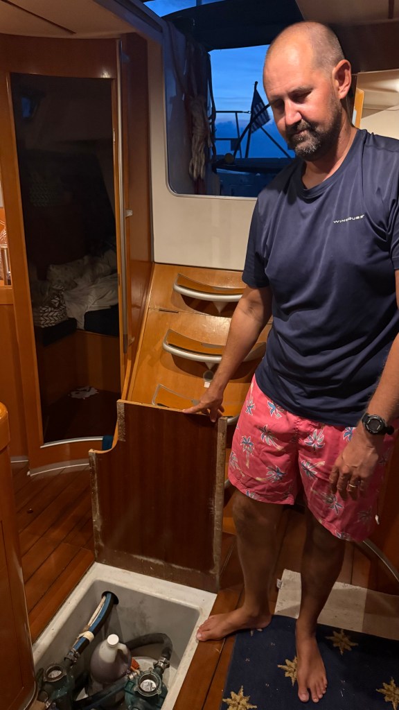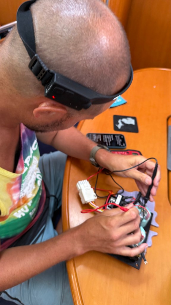 We’d found a local guy on the island who works on the generator that powers the whole place – which felt promising, like if anyone could fix it, it was him. And he did fix it, technically. It started. It ran. It just didn’t charge the batteries, which is, as it turns out, the main thing we need our generator to do.