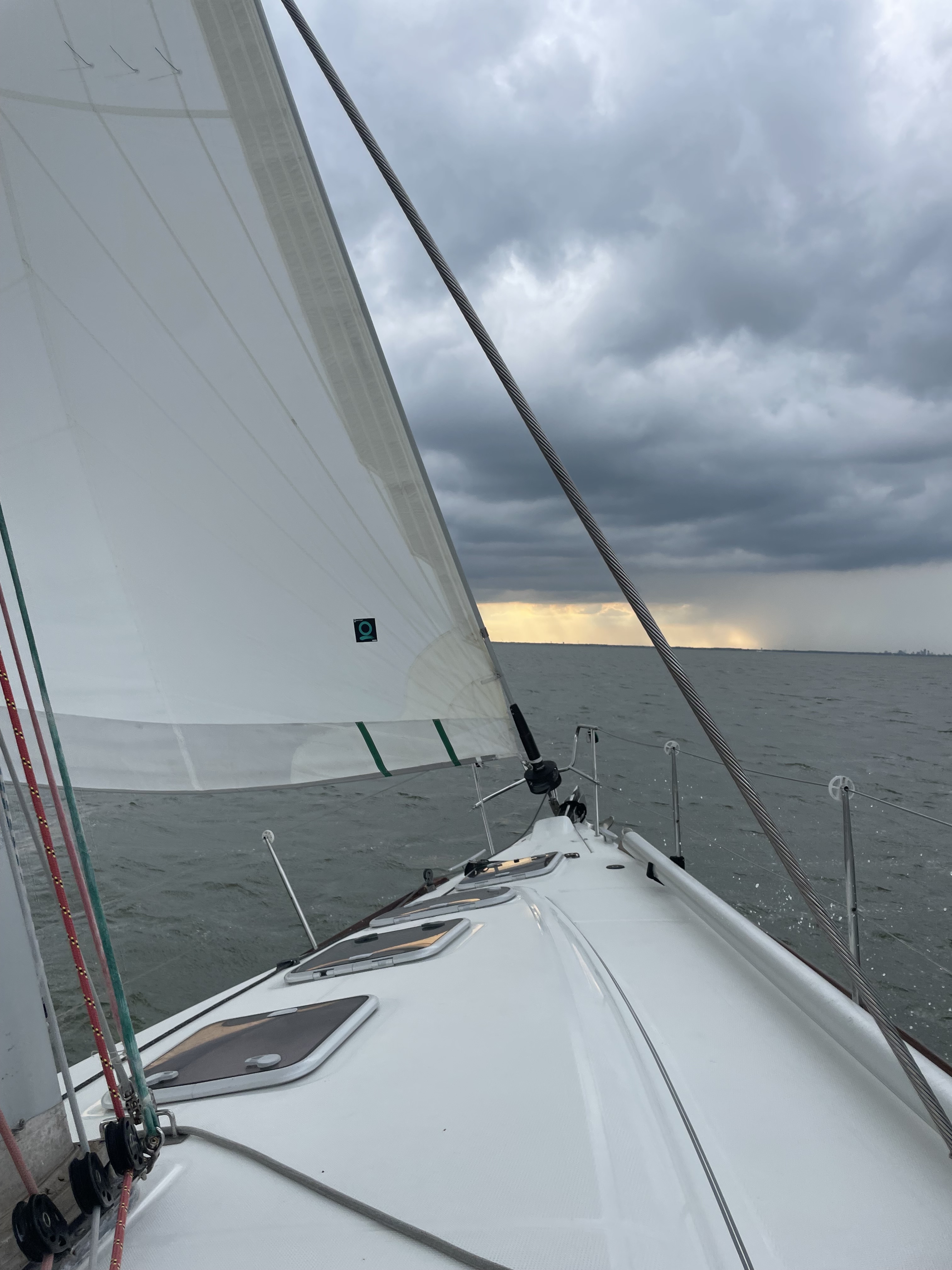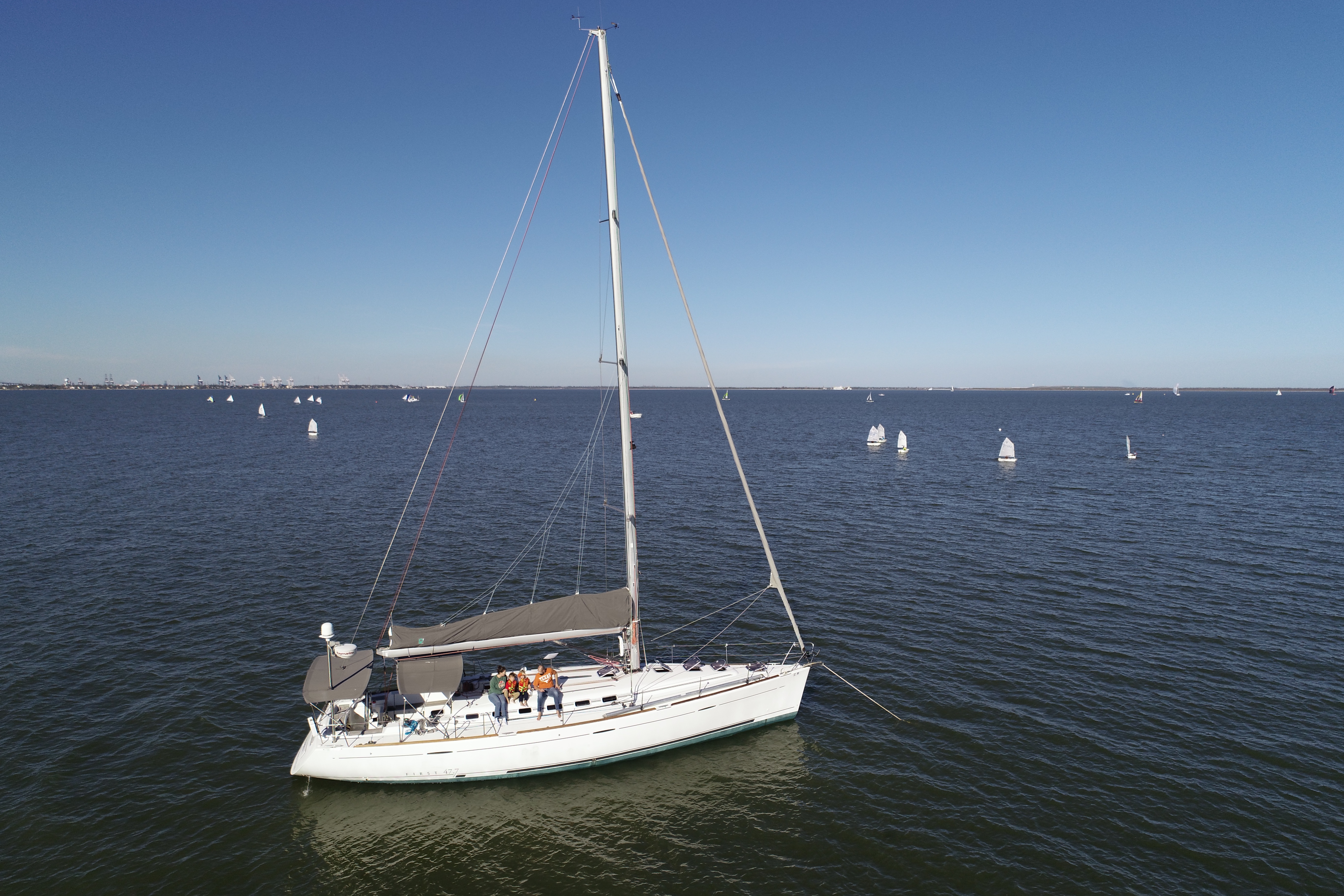 A 2005 Beneteau First 47.7 – 48′ racer/cruiser monohull with a 70’ mast and 7’ draft. She’s fast, sturdy, and unique.