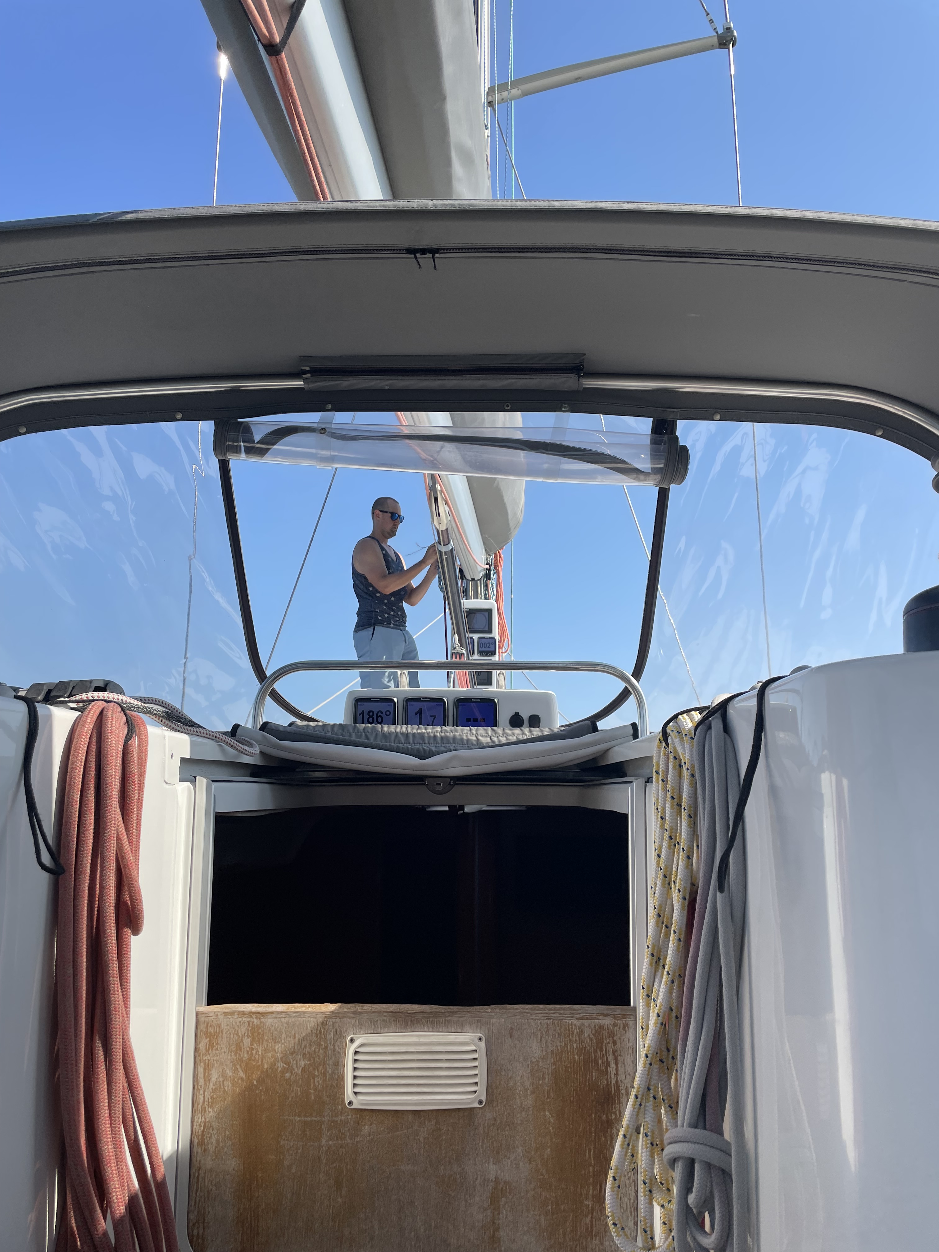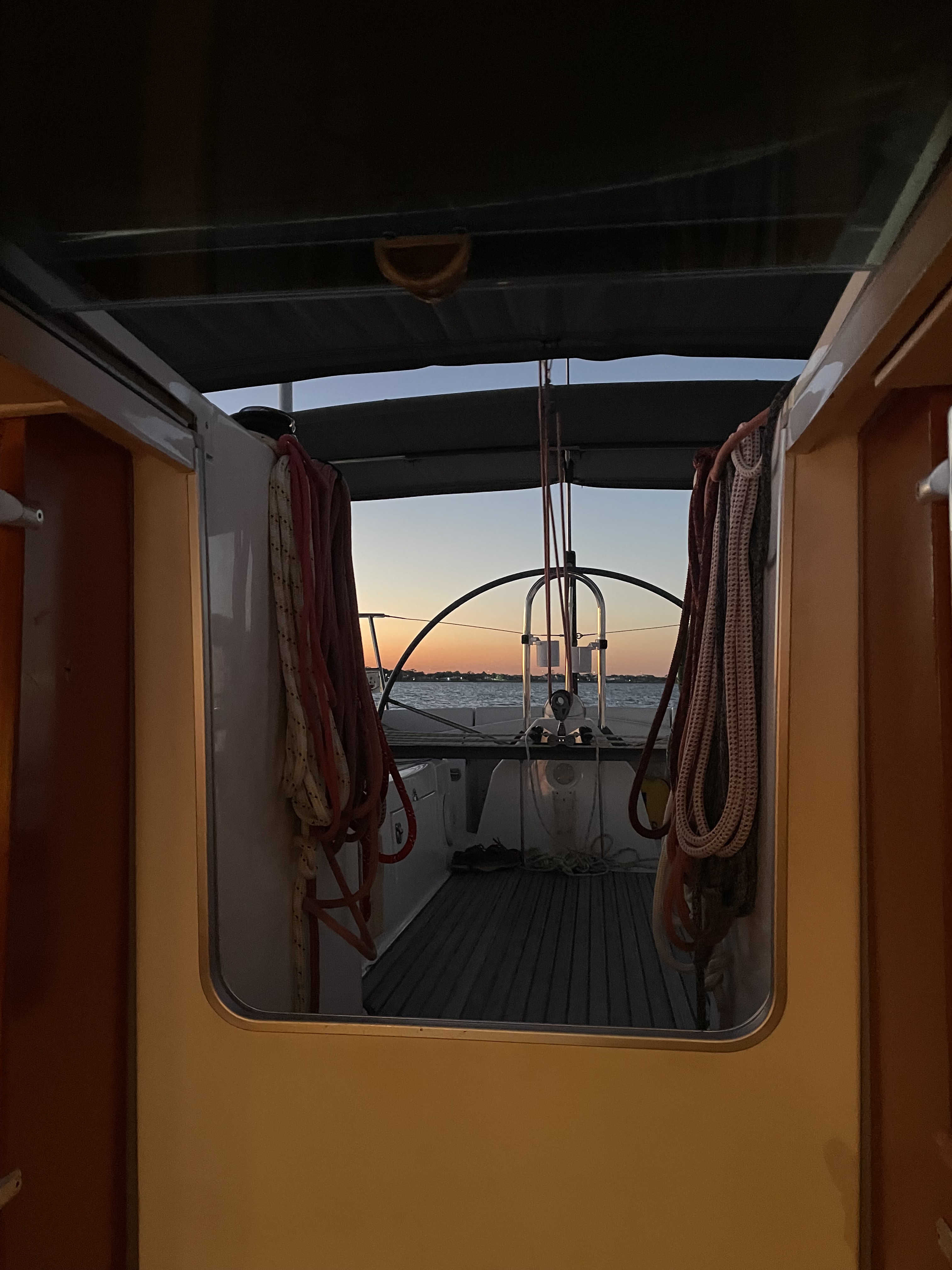 When it’s stormy or the weather is bad and we’re at anchor, we hunker down and read, play games, or do some shared screen time.